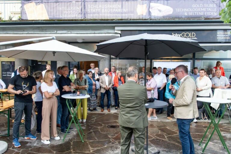 Am Donnerstag haben wir die Eröffnung unserer neuen interGOLD-Filiale in Hallein gefeiert. 🎉 Zahlreiche großartige Gäste waren dabei. Wir gratulieren herzlich Gerhard Griesacker zur Eröffnung des Büros und laden alle ein, unseren neuen Standort zu besuchen. Kommen und holen Sie sich Ihre persönliche Wertschutzbroschüre vor Ort ab! Gemeinsam echte Werte schaffen!